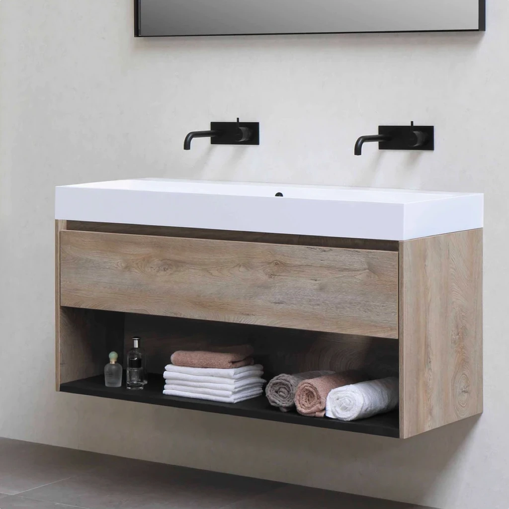 Better Home and Garden Farmhouse 24.5" Walnut Single Basin Bathroom Vanity, with top, requires assembly