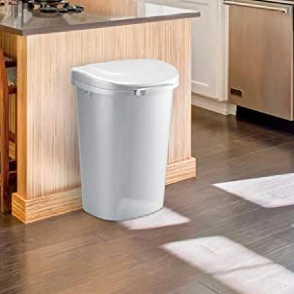 Trash can with anti-fingerprint coatingEasy to take out the bag, the inner plastic box holds the bag in placeDoubles as a recycling binSize: 17 inches (width) x 26 inches (height) x 15 inches (depth)